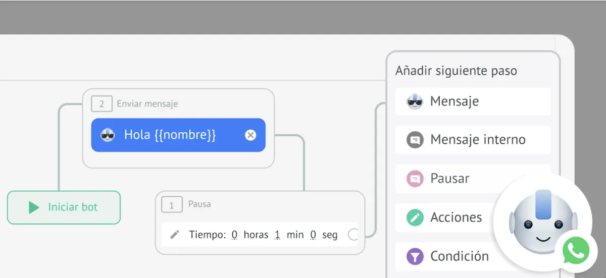• Constructor visual de chatbots, que permite diseñar flujos conversacionales sin programar.